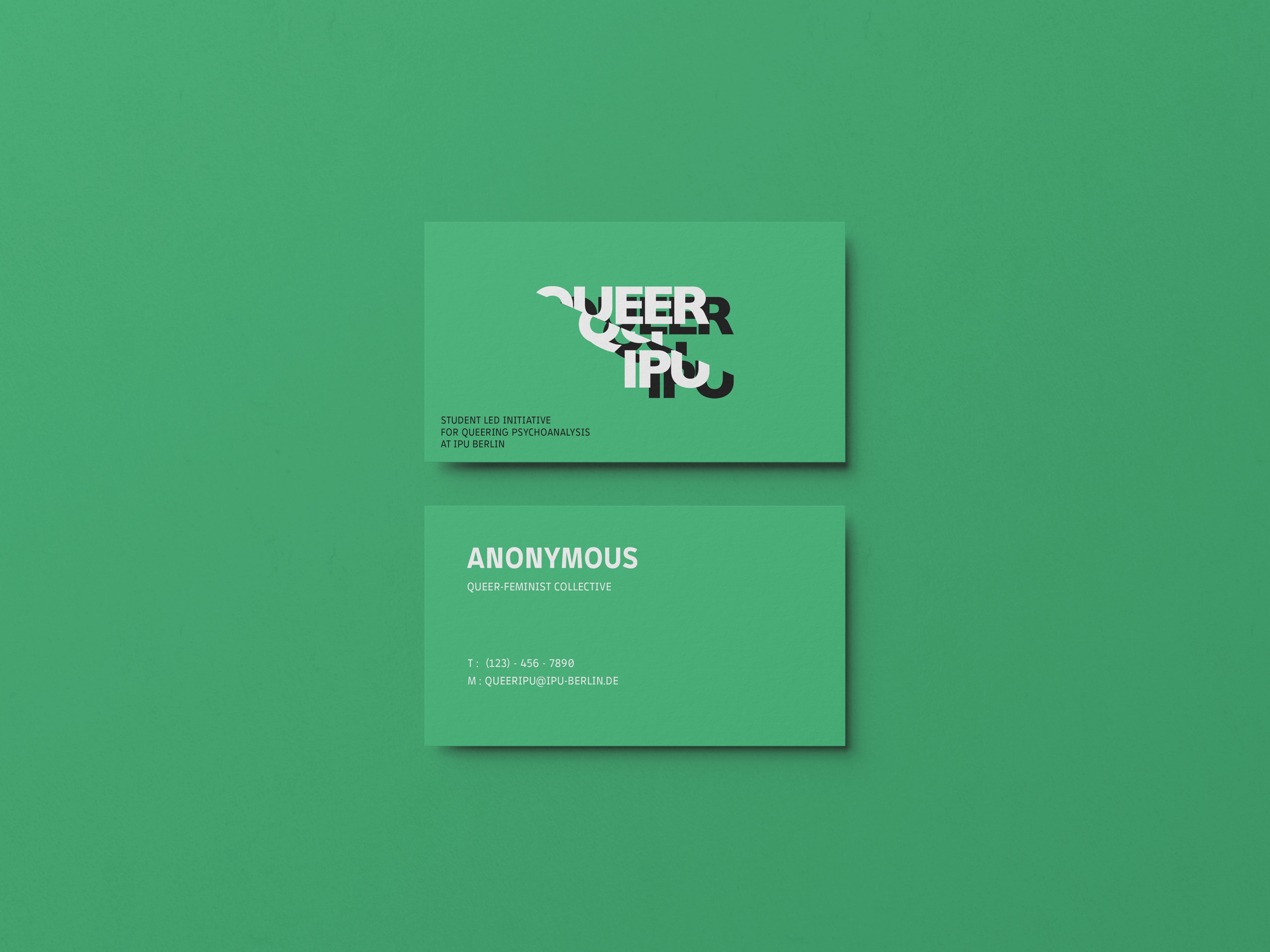 For Queer IPU, a queer-feminist student initiative at the International Psychoanalytic University Berlin, I developed a conceptual wordmark combining visual clarity with political intention. The goal was to create an identity that functions within the institutional university context while making the initiative’s theoretical and activist stance visible.The logo is based on a typographic intervention rather than a symbolic illustration. The wordmark “QUEER IPU” is set in a stable, sans-serif typeface and then diagonally cut and slightly shifted. This formal disruption represents a moment of fracture and reassembly. The structure remains legible, but its internal order is altered. The cut introduces tension without dissolving clarity. Conceptually, the gesture reflects queer theory’s engagement with normativity: systems are not rejected entirely, but interrupted, questioned, and reorganized. The logo operates within institutional form while subtly destabilizing it. The result is a mark that feels precise and controlled, yet carries an embedded critique. It does not rely on decorative symbolism; instead, the meaning emerges from structural modification.